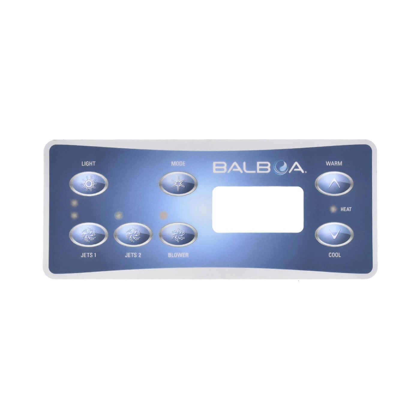 - Light, Mode, Jets1, Jets2, Blower, Warm, Cool