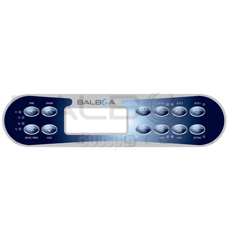 - Time, Warm, Mode/Prog, Cool, Jets1, Jets2, Jets3, Jets4, Invert, Light, Blower, Option