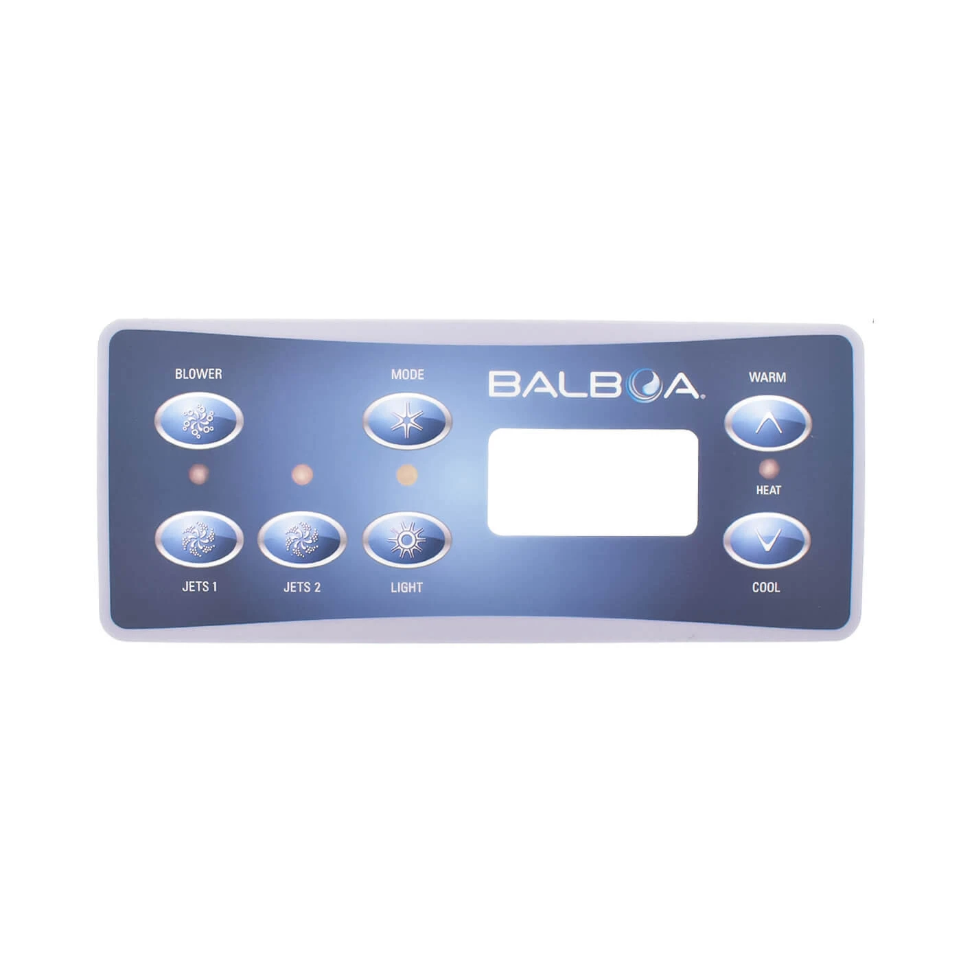 - Blower, Mode, Jets1, Jets2, Light, Warm, Cool